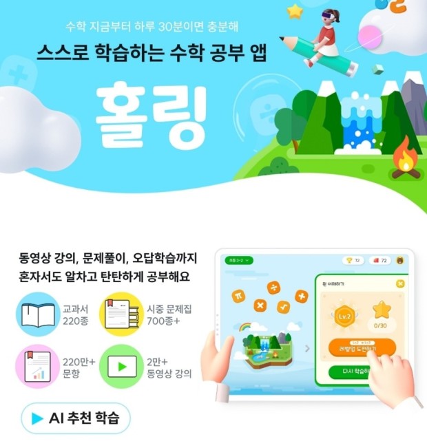 - 특징: 개념 설명 + 문제 풀이, AI 맞춤형 연산 훈련 제공, 게임 기반 학습