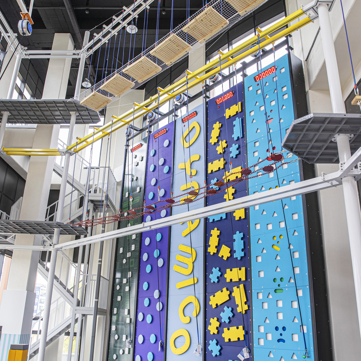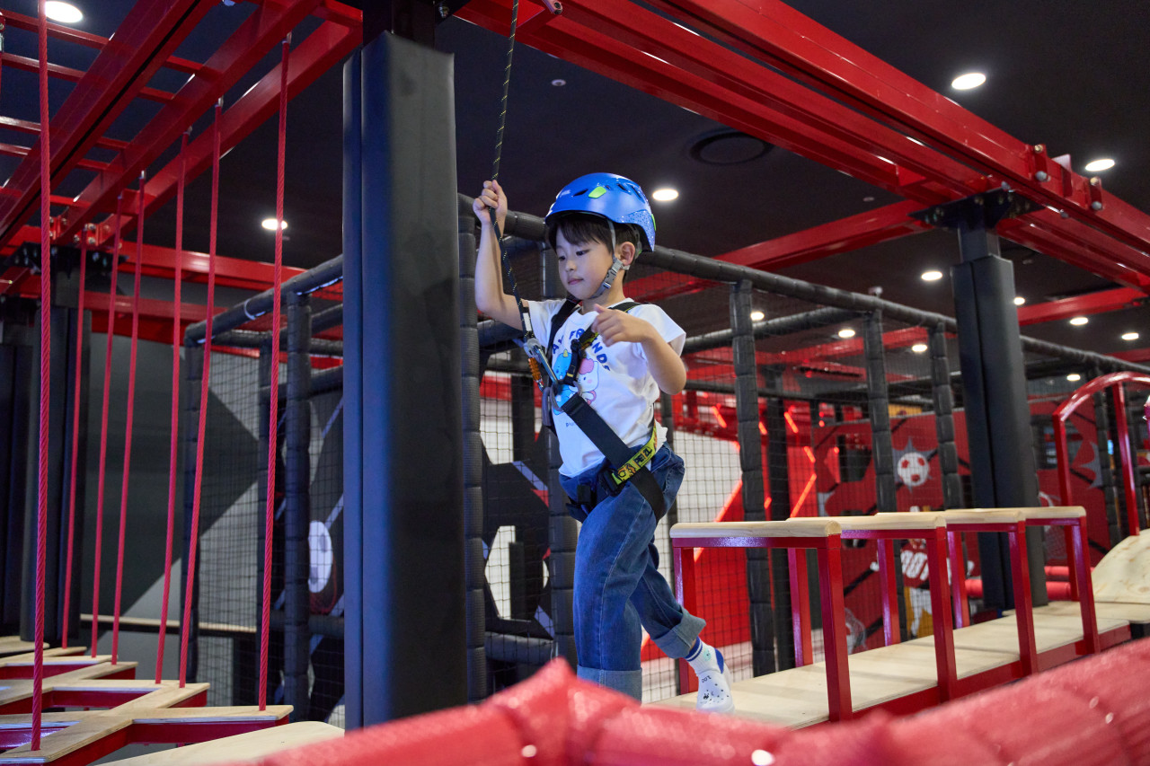 👍 장점: 대형 실내 어드벤처 존, 짚라인