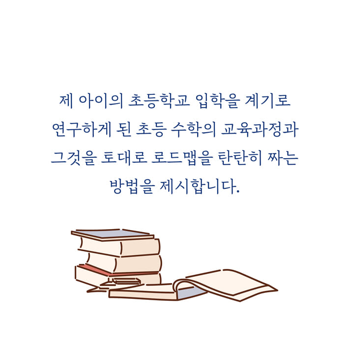 초등 수학이 탄탄해야 수능 수학을 풀 수 있습니다. 하지만 90%의 부모님이 초등 수학에서 가장 핵심인 교과서 개념을 무시한 채 과한 문제 풀이와 유형 암기로 아이를 몰아가고 있습니다. 뚜렷한 근거도 없이 초등 5학년 때 중등 수학 시작, 중학교 졸업 전 고등 수학 마무리를 꿈꾸며 능력이 안 되는 아이에게 억지로 선행을 시키고 있습니다. 부모님이 이렇게 하는 건 불안하고, 수학 공부의 방향과 계획이 없기 때문입니다.