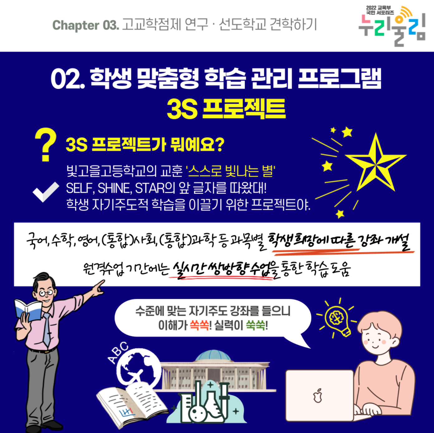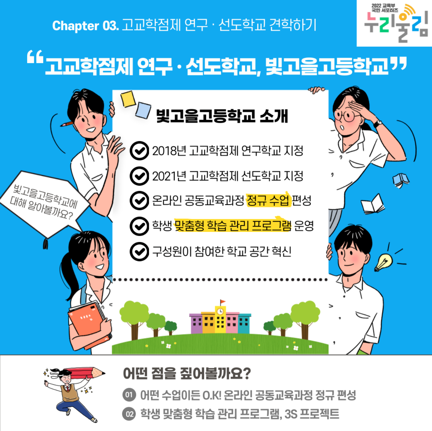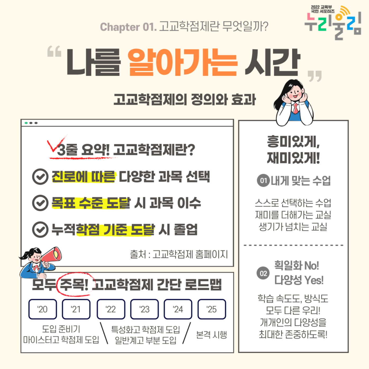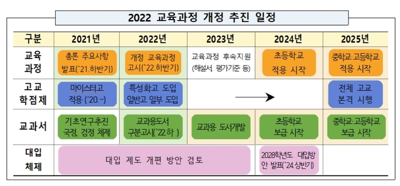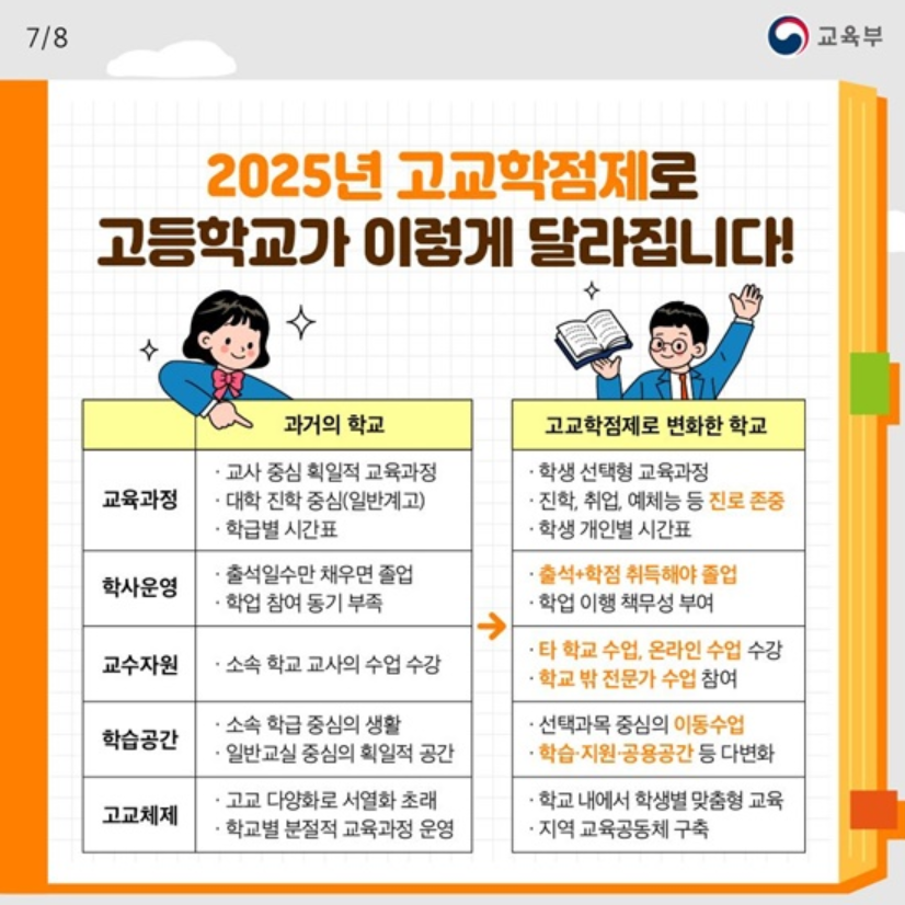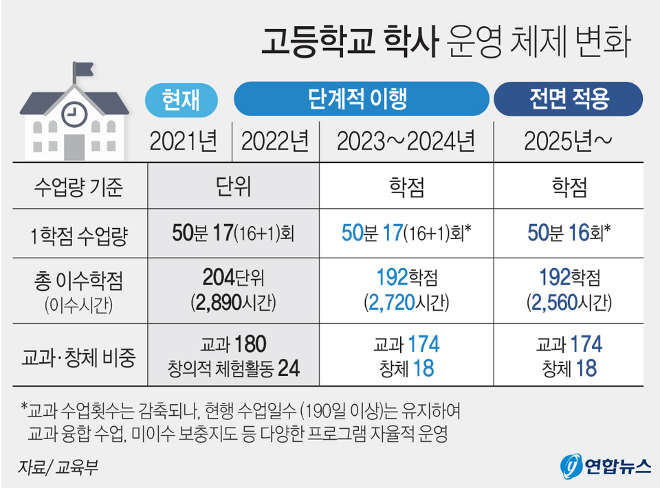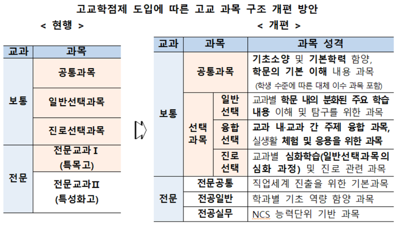 | 고교학점제 | 학생 개개인이 선택한 과목을 이수하여 학점으로 졸업 기준 충족 |