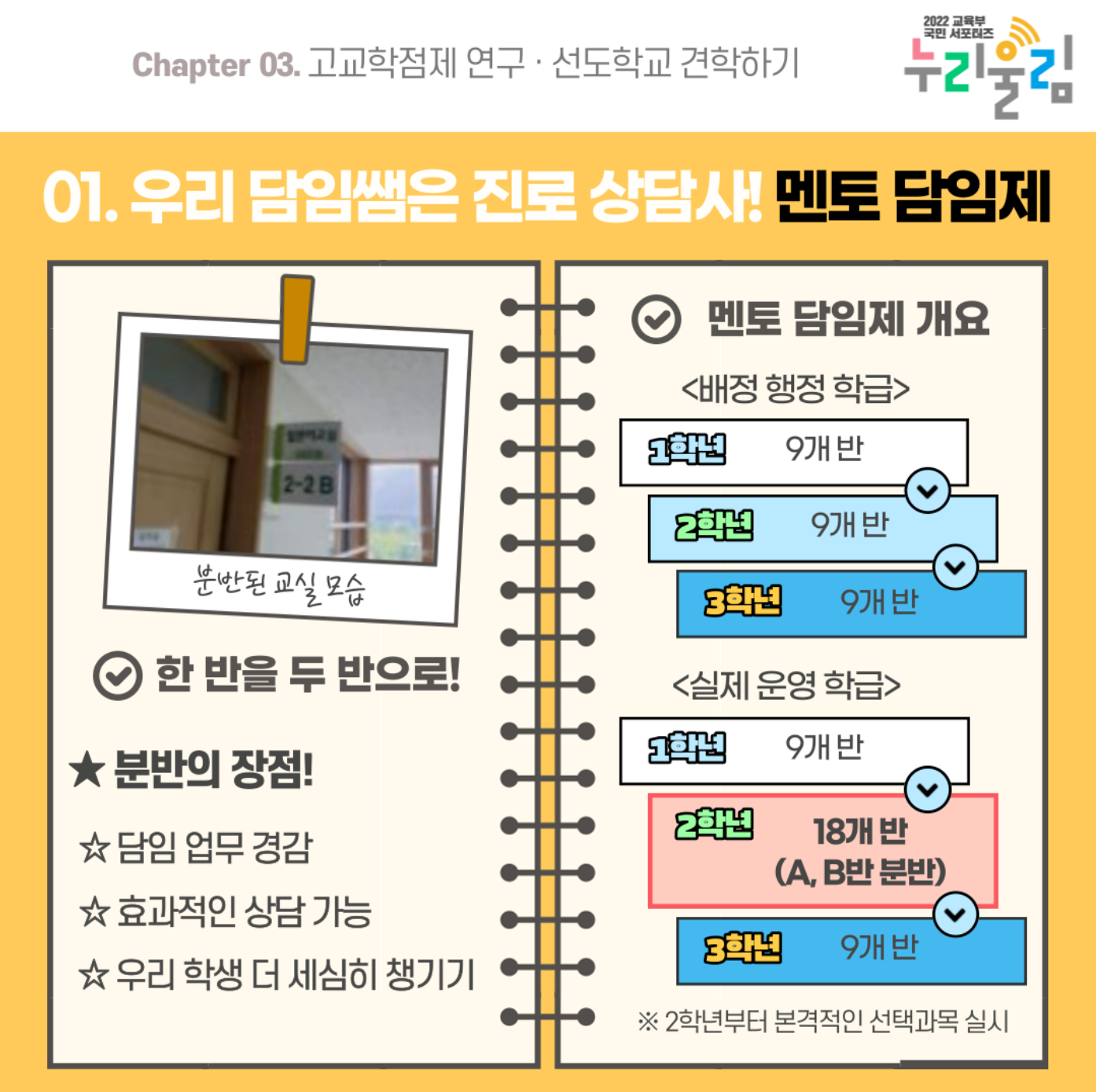 | 유연한 학사 운영 | 다양한 선택과목 제공으로 학생들의 진로 맞춤 교육 가능 |