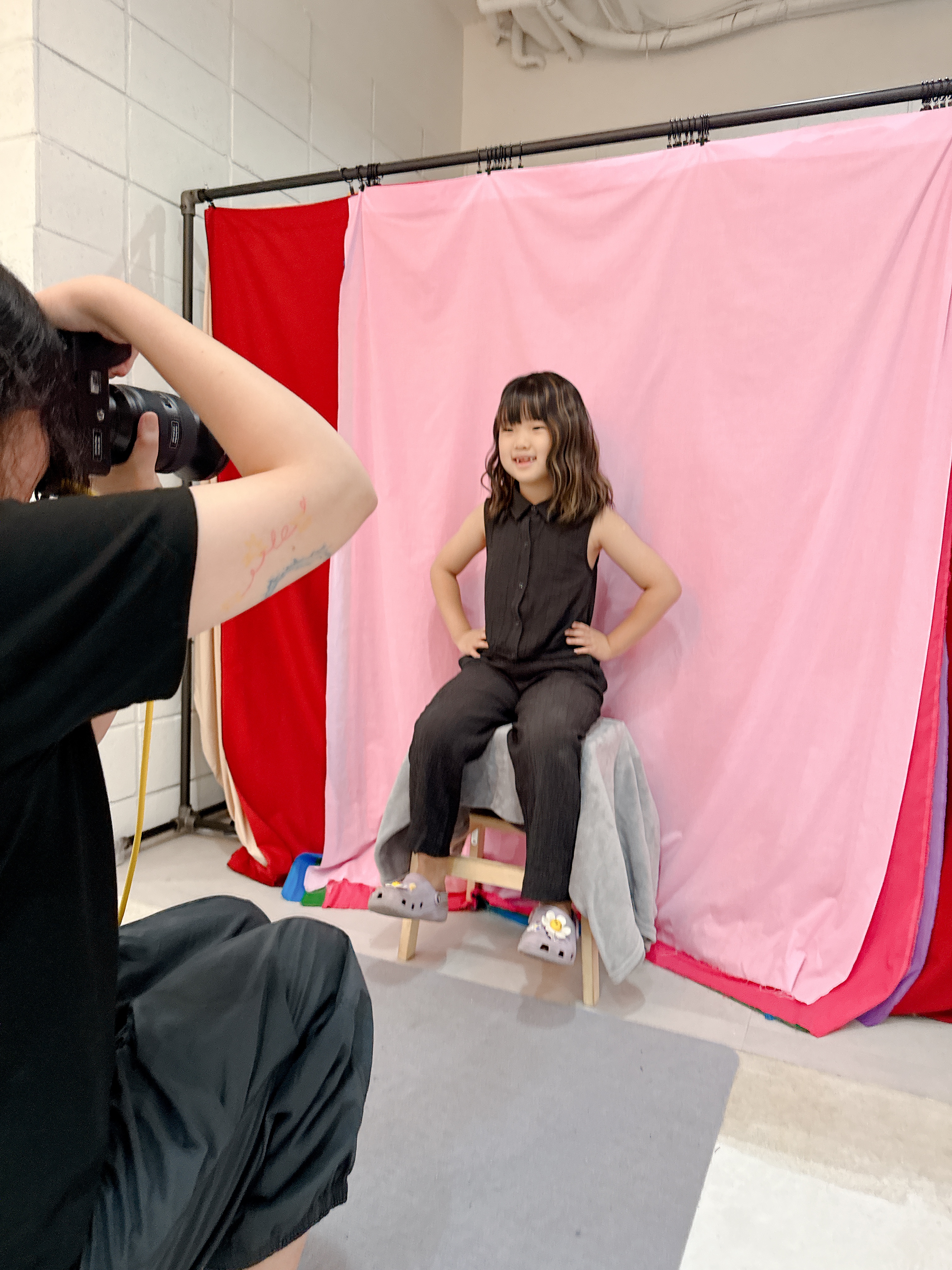 스튜디오에 도착했을 때 가장 인상 깊었던 점은 바로 작가님의 따뜻하고 세심한 태도였어요. 촬영을 바로 시작하지 않고, 아이와 눈높이를 맞춰 대화하며 친밀감을 쌓으시더라고요. 낯가림이 심한 아이들에겐 그림을 그릴 수 있는 종이를 주시니까 자연스럽게 그림을 그리면서 대화가 가능했어요.