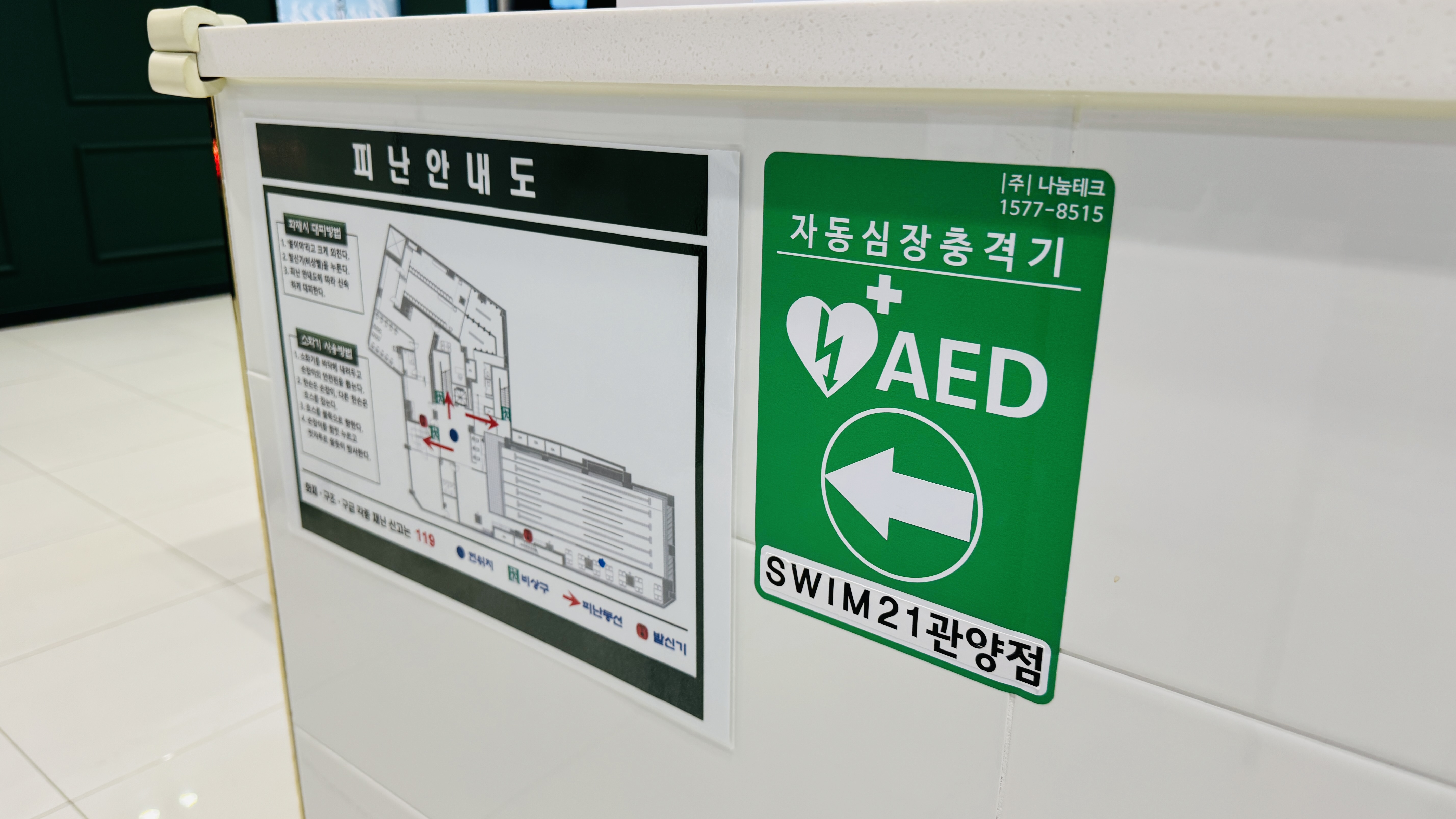 아이를 기다리는 부모님들을 위한 대기 공간도 훌륭합니다. 통유리를 통해 아이들 수업 모습을 볼 수 있고, 따뜻한 커피 한 잔의 여유를 즐길 수 있도록 카페처럼 꾸며져 있어요. 혹시 모를 상황에 대비한 제세동기(AED)까지 갖춰진 것을 보고 세심한 배려에 다시 한번 감동했습니다.