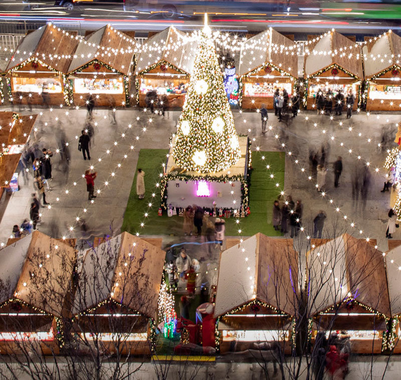 연말 분위기를 사랑하는 분들에게 꾸준히 사랑받는 장소입니다. 크리스마스 마켓 부스와 조명이 어우러지고, 주말에는 버스킹 공연까지 더해져 활기가 넘칩니다.
