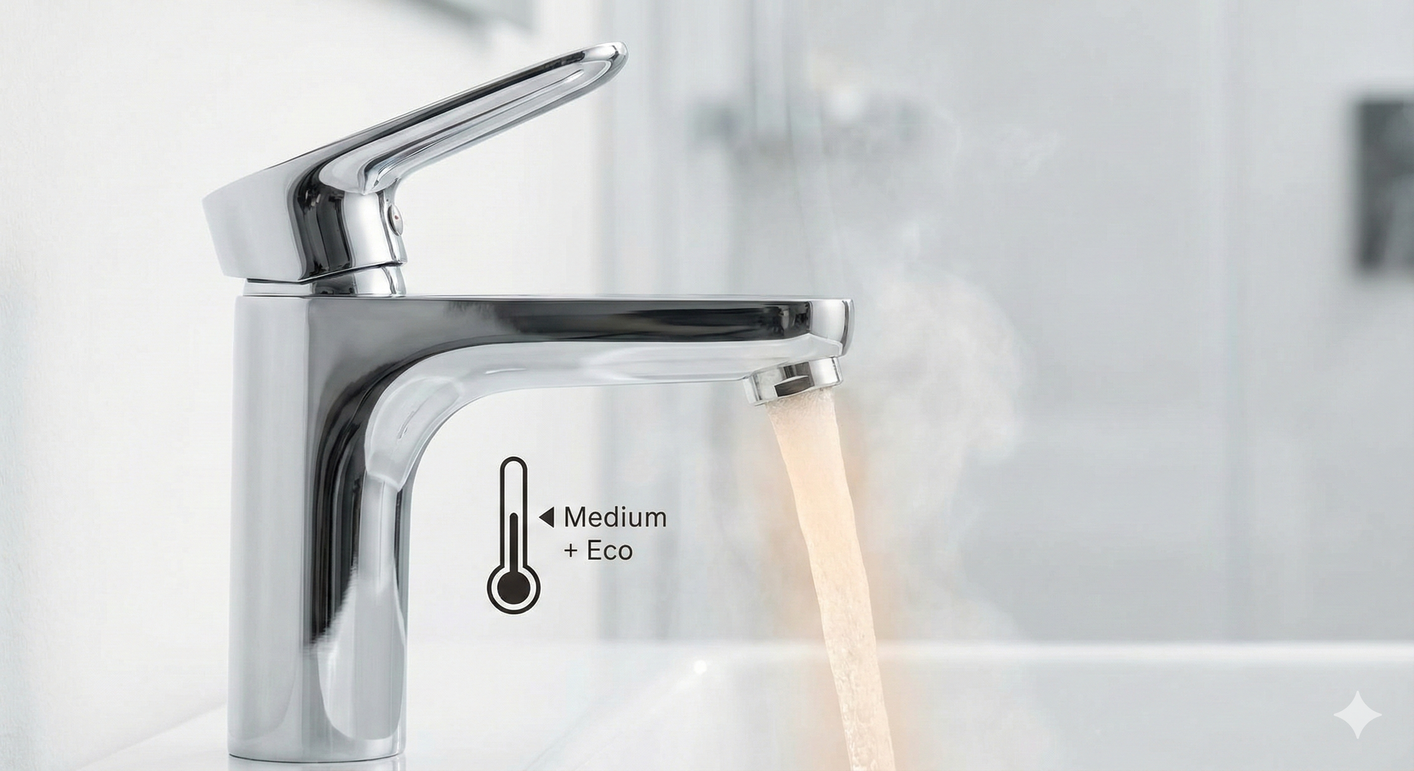 ▲ 온수 설정은 '강'이 아닌 '중(Medium)'으로도 충분하며, 불필요한 가스 낭비를 막을 수 있습니다.