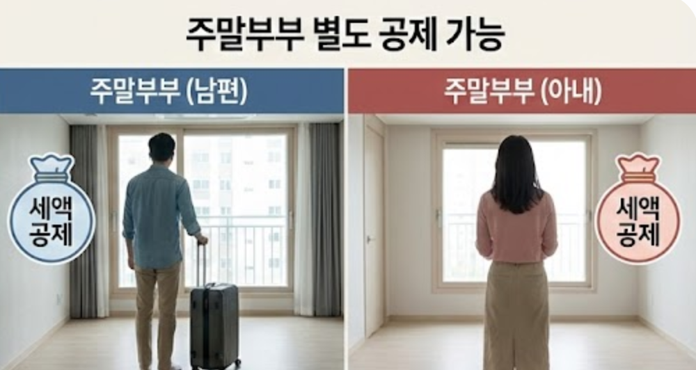- 월세 세액공제 대상 확대: 직장 문제로 떨어져 사는 주말 부부의 경우, 기존에는 세대주만 공제받을 수 있었으나 앞으로는 부부 각자가 별도로 공제를 받을 수 있게 됩니다(각각 무주택 근로자 요건 충족 시).