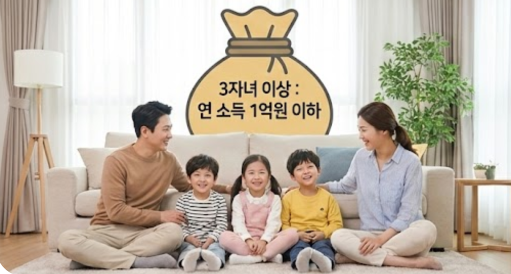- 소득 요건 완화 (다자녀): 3자녀 이상 가구인 경우, 연 소득 7천만 원 이하라는 기존 지역/소득 구분 없이 1억 원(총급여) 이하까지 공제 대상이 확대됩니다.